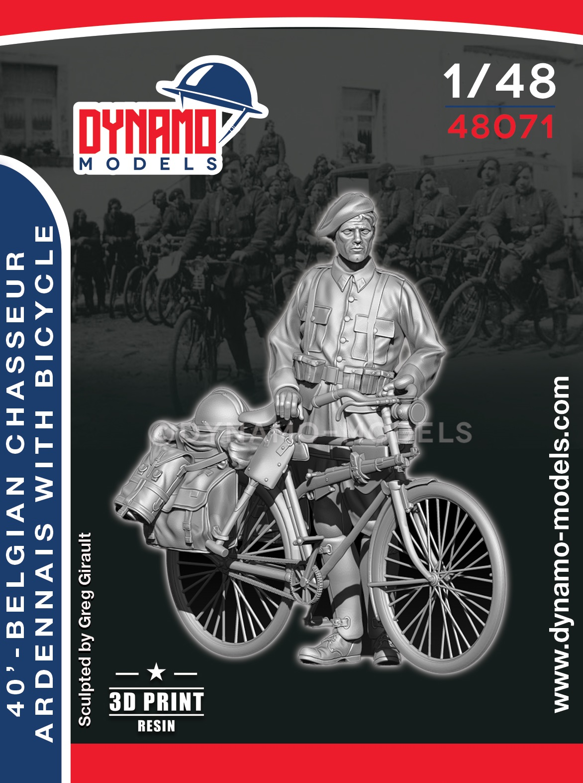 – High-quality figure scale 1/48 Belgian Chasseur Ardennais With Bicycle exclusively in 3D resin print by Dynamo Models.