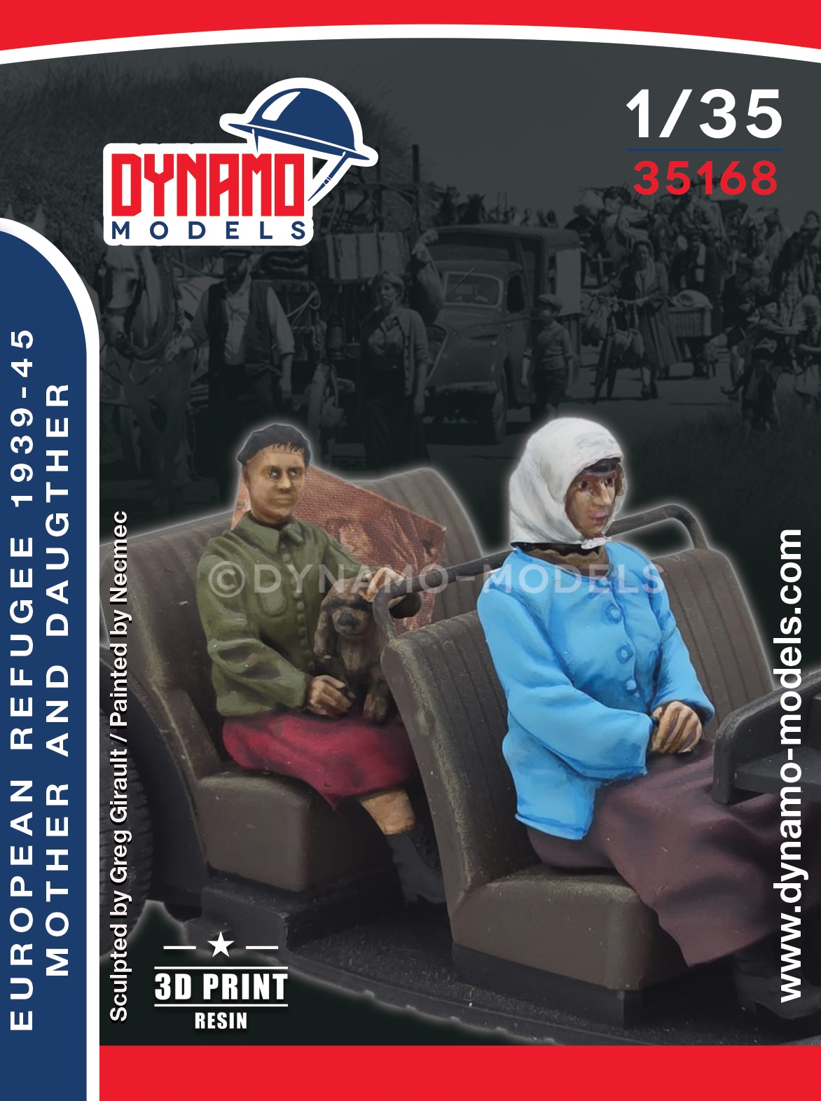 The 1/35 Civilian – Mother and Daughter Sitting in car by Dynamo Models is a finely detailed 3D printed resin figure representing a displaced French civilian during WWII. Perfect for Battle of France dioramas and storytelling vignettes.