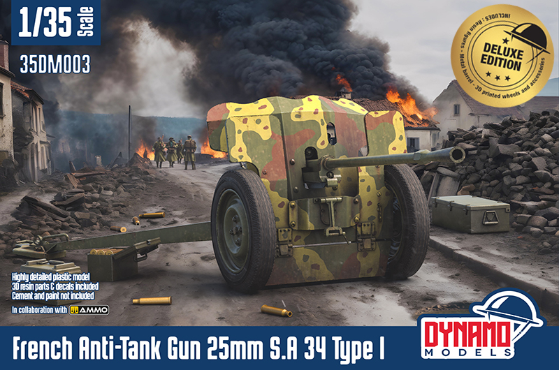 Inside of the box you can find a highly detailed plastic kit of the French Anti-Tank 25mm Gun S.A 34 type I Premium Edition, The mould for this kit is brand new by Dynamo Models